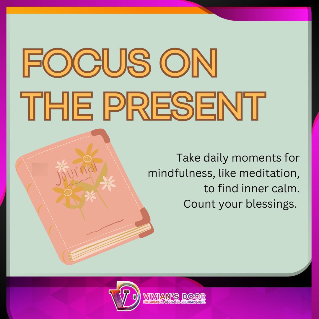Take daily moments for mindfulness, like meditation, to find inner calm. Count your blessings.