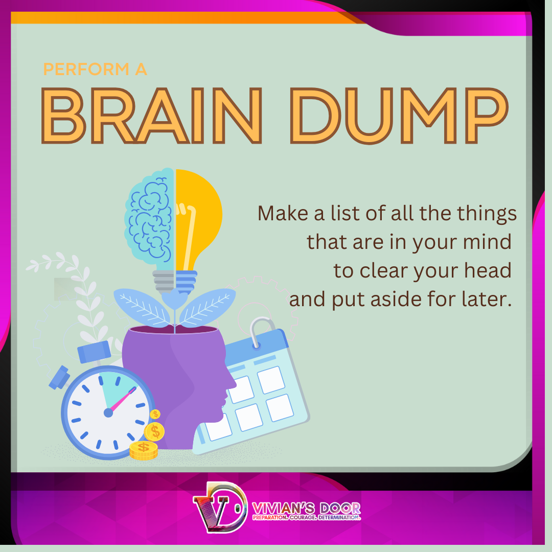 Make a list of everything in your mind to clear your head and put it aside for later.