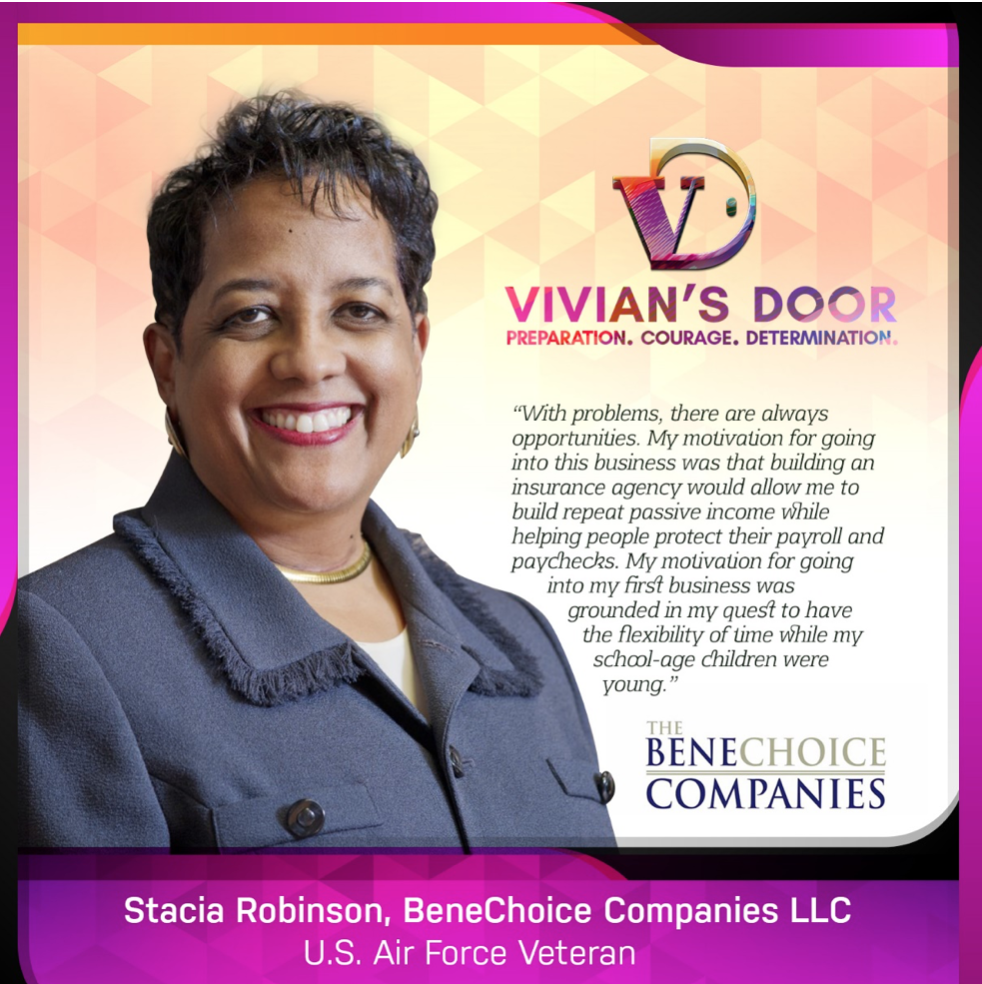 Located in Montgomery, AL, Stacia Robinson owns and runs the BeneChoice Companies LLC, an Employee Benefits Agency which has been in business for 20 years. She is a veteran who served in the US Air Force from 1984-1991, where she rose to Captain’s rank in the Communications-Computer field.