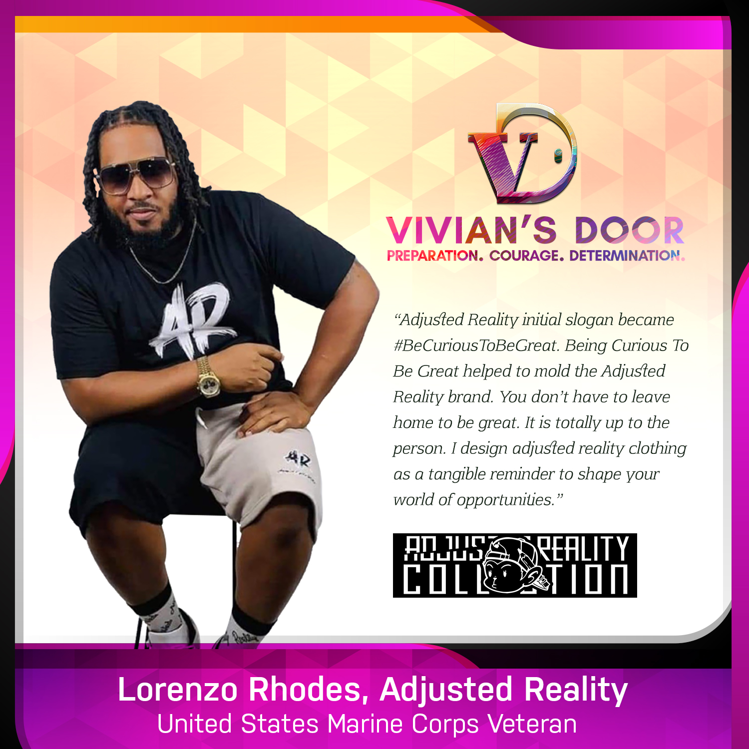 Lorenzo Rhodes is a 39-year-old veteran who served in the United States Marine Corps from 2001-2008. He owns and runs a fashion/retail clothing business called Adjusted Reality.