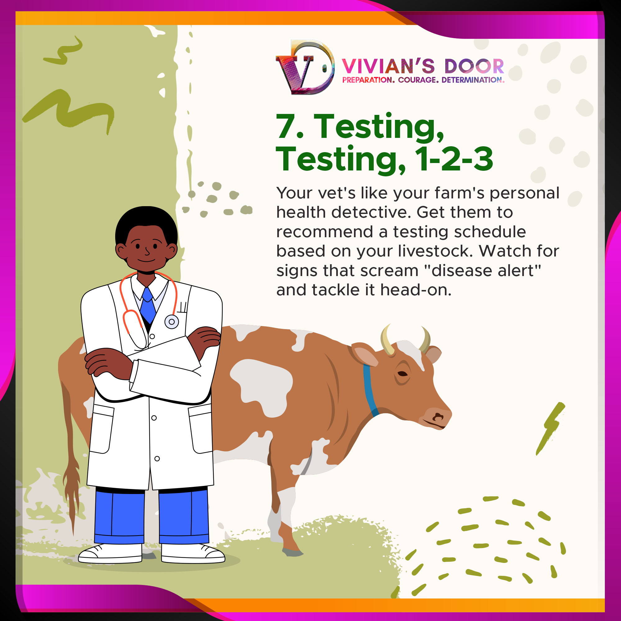 Your vet’s like your farm’s personal health detective. Get them to recommend a testing schedule based on your livestock. Watch for signs that scream “disease alert” and tackle it head-on.
