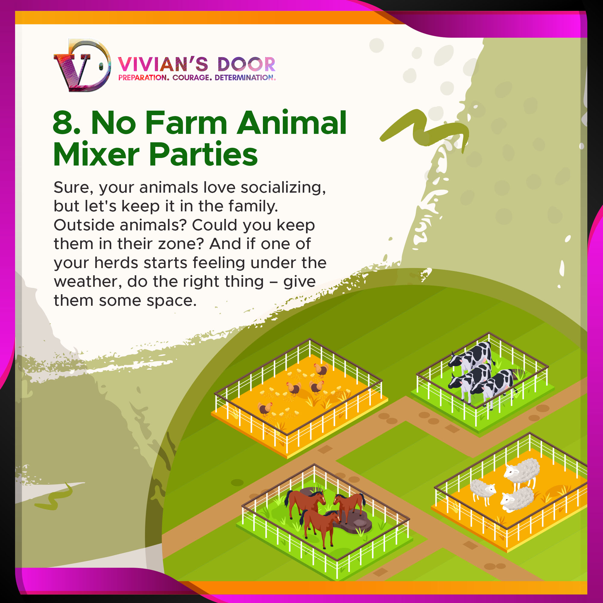 Sure, your animals love socializing, but let’s keep it in the family. Outside animals? Could you keep them in their zone? And if one of your herds starts feeling under the weather, do the right thing – give them some space.