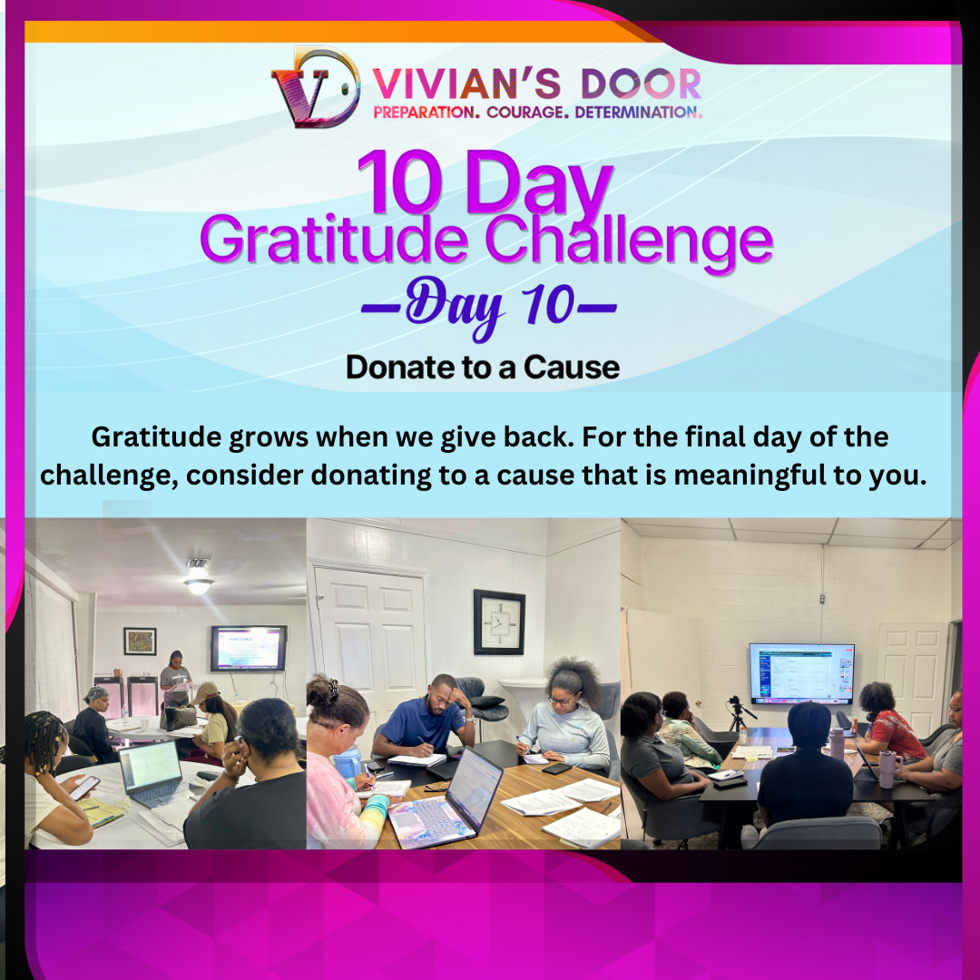 For the final day of the challenge, consider donating to a cause that is meaningful to you. Whether it’s a local charity, a nonprofit organization like Vivian’s Door, or another group that resonates with your values, giving back is one of the most powerful ways to express gratitude.