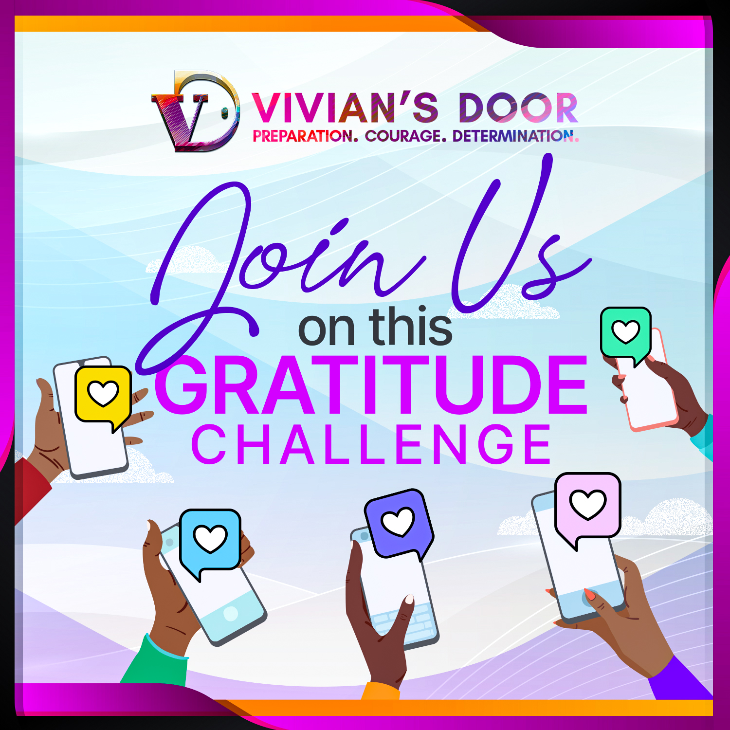 Join Us on This Journey: We thank you in advance for coming on this journey with us. Each day, take a moment to reflect on the challenge and share your experiences on social media. Tag @Vivian’s Door and use the hashtag #ViviansGratitudeChallenge to connect with others and spread the spirit of gratitude.